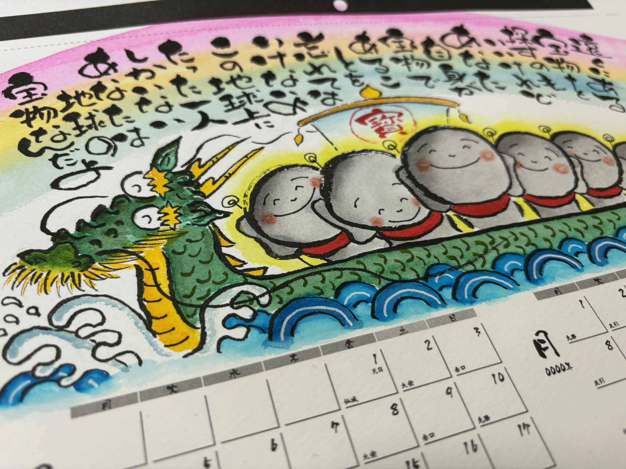 お地蔵様を中心に、お釈迦様、龍の宝船、大仏様、ハート、招き猫、達磨大師、が可愛く登場します♪