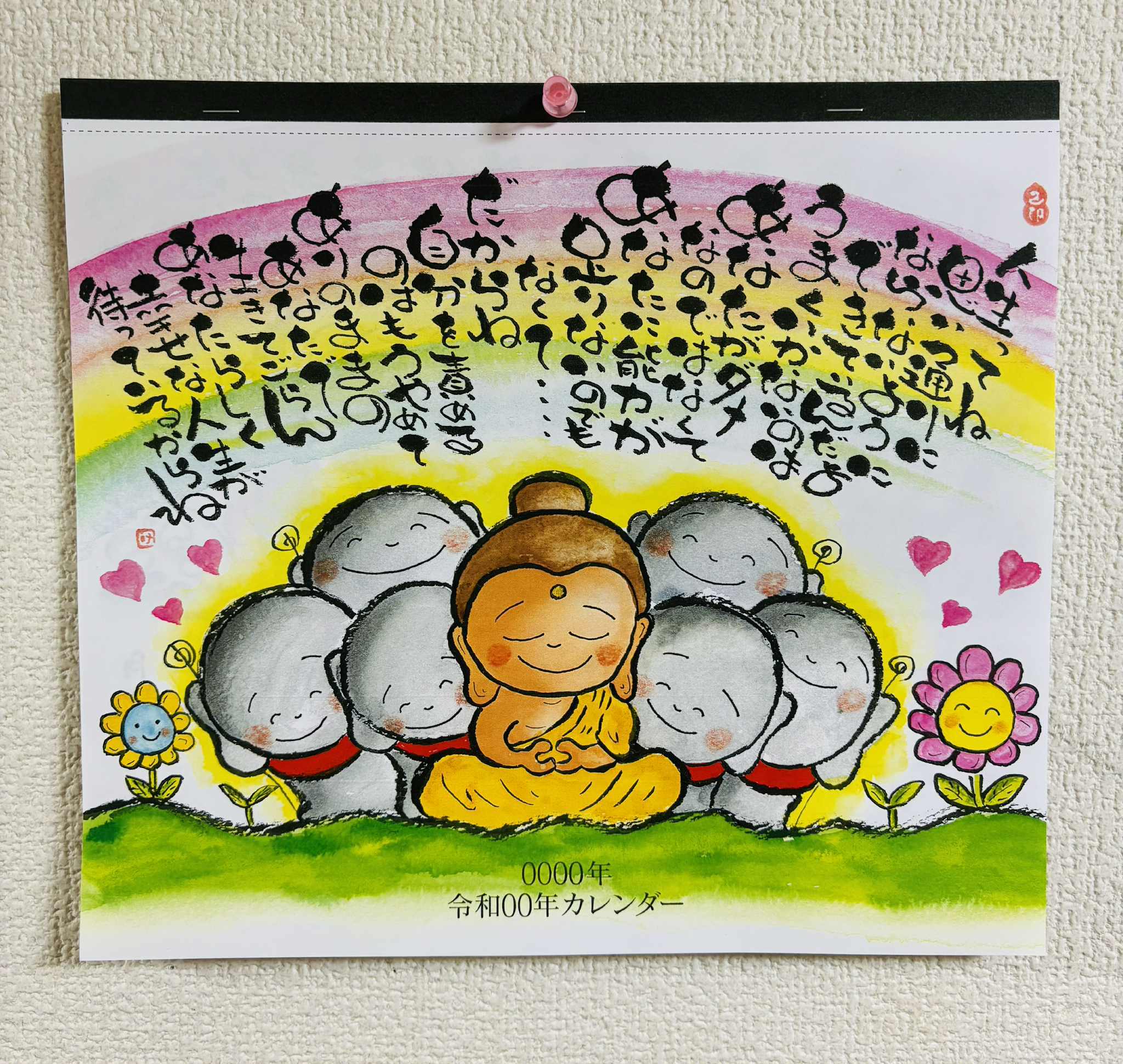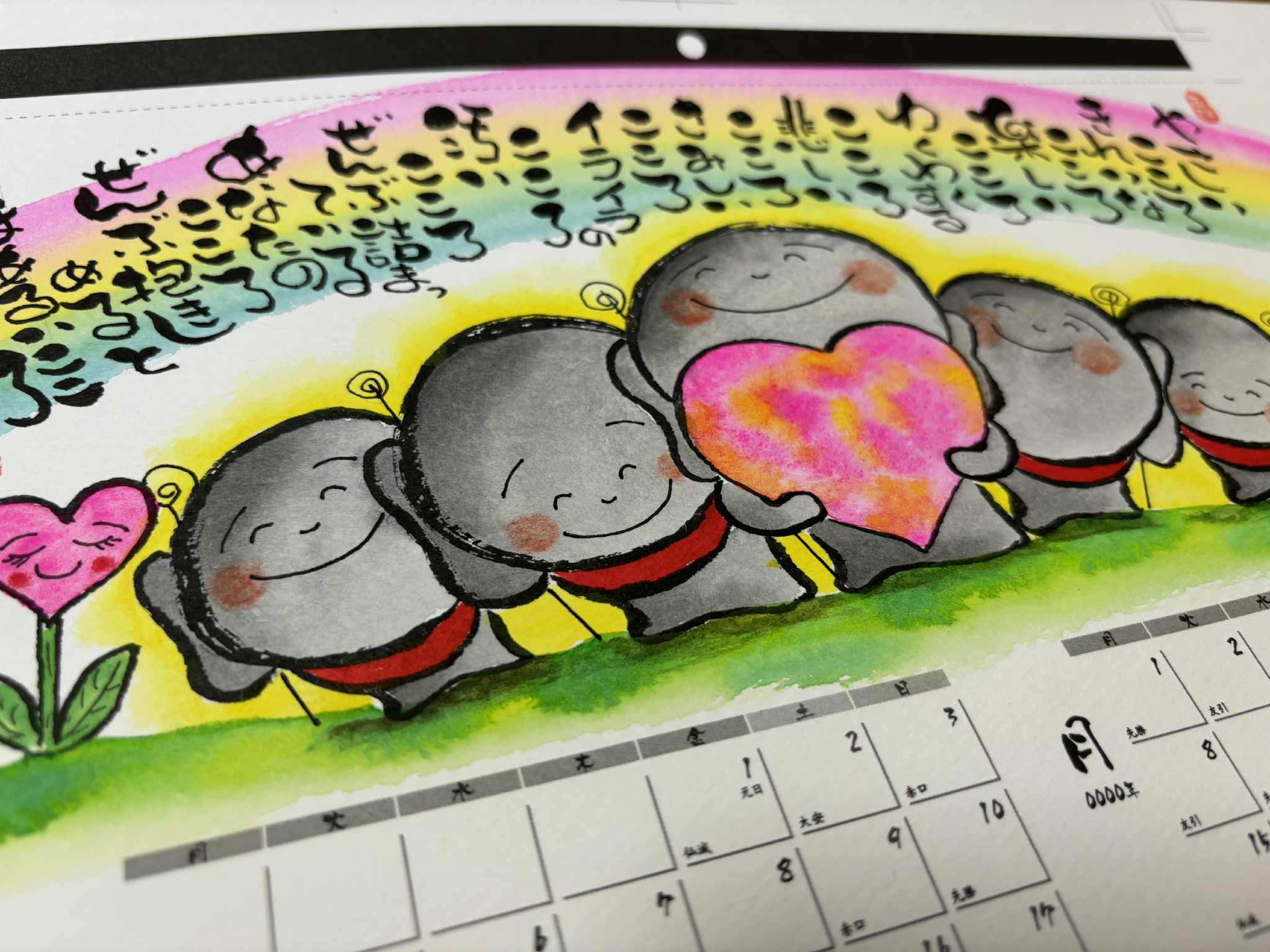 優しい絵に、素敵な言葉も載せたカレンダーになっていますので、ぜひお部屋に飾ってお楽しみください。